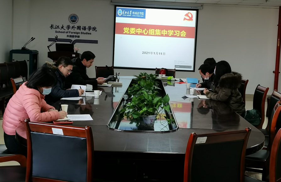1月11日下午,学院在文科楼712会议室召开党支部书记抓党建工作述职会,并开展学院党委理论学习中心组集中学习。会议由院党委书记危煜祥主持,院长谈宏慧,副院长谢家成、彭沂,党委副书记魏红洁,党委委员、公外一党支部书记马春花,党委委员、教工综合党支部书记段友国,研究生党支部书记许泽琼,本科生党支部书记童超参加了线下会议,武汉校区党支部副书记郭蕾在线上参加了会议。